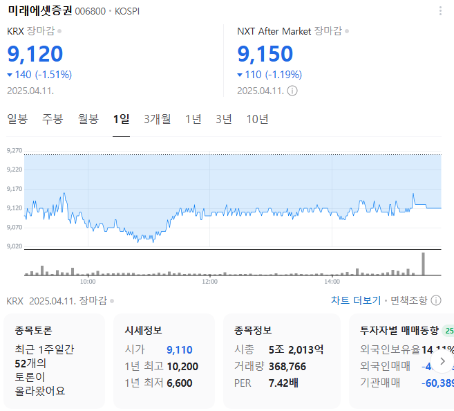 미래에셋증권 주가 정보