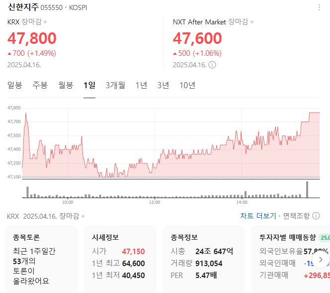 신한지주 주가 정보