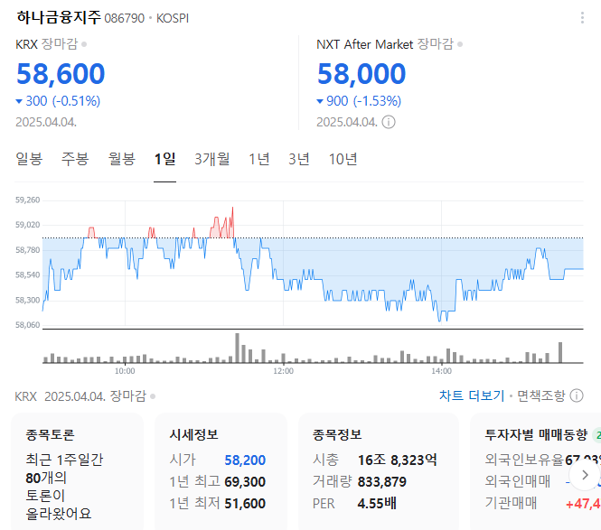 하나금융지주 주식 결론