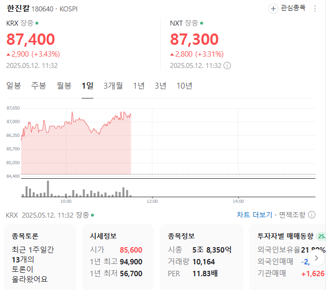한진칼 주가 정보