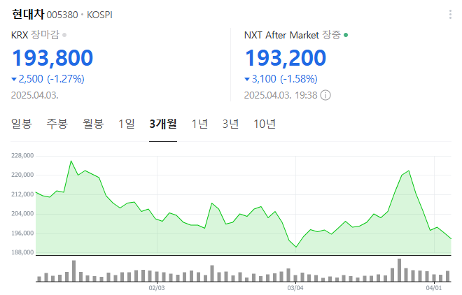 현대차의 대표자는 정의선, 장재훈, 이동석(각자 대표) 이며 1967/12/29 에 설립되었습니다. 주식 시장에는 1974/06/28 에 상장되었으며 현재 전체 종업원 수는 72,190명 입니다. 본사 주소는 서울시 서초구 헌릉로 12 (양재동)에 위치하고 있습니다. 기업 분석을 위해서는 현대차의 제무제표와 재무 비율 그리고 경영진의 역량을 파악해야 합니다. 그리고 기업의 주요 제품과 서비스의 경쟁력, 시장 수요, 차별화 요소를 다각도로 분석합니다. 현대차의 전체 기업 순위는 [관련 데이터 없음]입니다. 매력도 평가는 [관련 데이터 없음]입니다. 현재 경제 상황과 리스크를 평가했을 때 관련 데이터 없음 순위 관련 데이터가 없다면, 이는 분석 빅데이터 2094개 기업에 포함되지 않는 종목입니다. 데이터가 없다는 것은 시장 영향력이 적다는 뜻이지 규모가 작은 것을 의미하지는 않습니다.